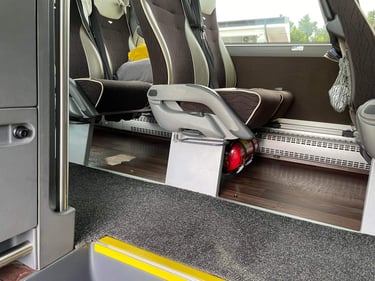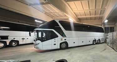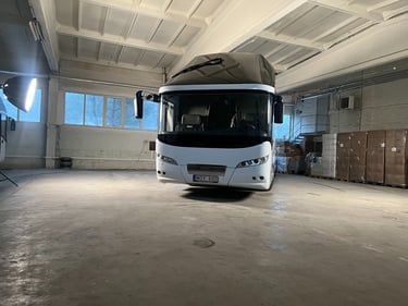 Siūlome platų ir nuolat prižiūrimą transporto priemonių parką – nuo mikroautobusų iki didelių, komfortiškų turistinių autobusų. Kiekvienas mūsų autobusas atitinka saugumo ir komforto reikalavimus, kad Jūsų kelionė būtų sklandi ir maloni.